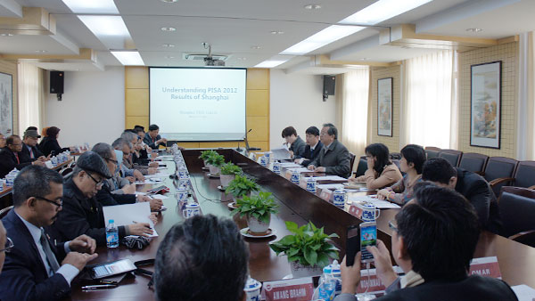 3月17日上午,应国务院侨办邀请,由马来西亚教育部副总监阿米努丁率领的马来西亚教育官员访华团一行35人访问我院。我院陈国良院长,普教所副所长、上海PISA中心负责人陆璟以及PISA中心其他成员接待了马来西亚教育官员访华团。访华团旨在了解上海教育发展及参加“国际学生评估项目(PISA)”的情况。上海市侨办文宣处邹芳处长和韩流陪同访问。 ![]() 陈院长对访华团的来访表示热烈欢迎并介绍了上海教育改革发展基本情况,着重介绍了上海的两轮课程改革。另外,他还对上海及其教育的一些独特之处作了说明,如独生子女政策、随迁务工人员同住子女教育和上海教师的教研系统。 PISA中心朱小虎老师介绍了PISA 2012的新特点、上海PISA 2012的主要结果和上海学生在数学领域的表现。沈学珺博士介绍了学校因素对学生表现的影响。陆璟副所长从中国的传统文化、教师、课程和教育均衡发展政策等几个方面分析了上海学生发展的原因。陈院长和PISA研究中心成员回答了访华团关于学生样本、课程改革、学生表现的校间差异、学生作业时间和学校课程等方面的提问。 |