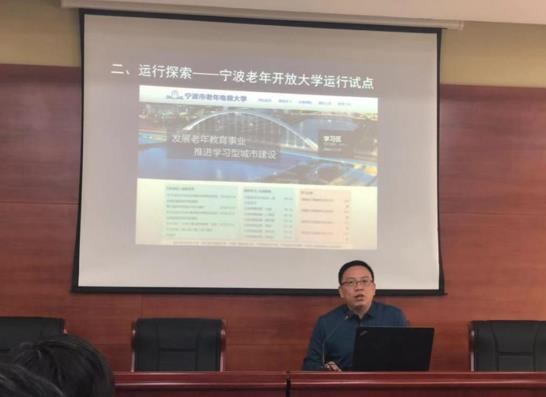 宁波广播电视大学副校长陈曙从基本背景、运行探索、努力方向三个方面对宁波老年开放大学的实践探索进行了报告。