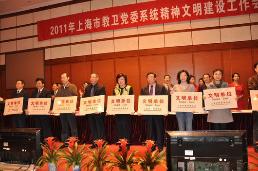 我院获得2009—2010年度“上海市教卫党委系统文明单位”的称号。在4月13日召开的2011年上海市教卫系统精神文明建设工作会议上,我院作为文明单位的代表,上台接受领导授牌。获得“上海市教卫党委系统文明单位”的称号是全院职工齐心协力、共同努力的结果。我们要继续奋斗,再创新的辉煌。