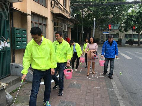 5月19日上午,民办所参加教科院和斜土社区的共建志愿活动,在党支部的发动下,7名党员积极响应,志愿为社区服务。一早大家就拿好工具,在社区工作人员的带领下,分头在茶陵路附近拣拾人行道上的垃圾。一路上发现地上的烟头特别多,引发大家对要进一步宣传引导、提升市民个人素质的讨论。经过约1小时的辛勤劳动,回头看着变得干净的人行道,大家都发出了会心的微笑,也感觉到参与志愿服务很有意义。