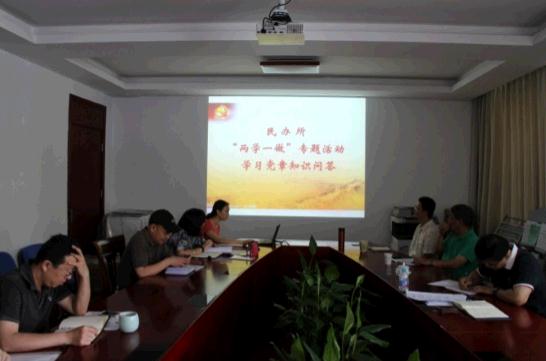 为贯彻“学党章党规、学系列讲话,做合格党员” 的学习教育计划,6月24日下午,民办所党支部召开党员会议,开展“两学一做”的第二次专题教育活动。此次活动安排内容丰富,除了邀请院党委陆勤副书记给党员上党课,开展党章知识学习之外,还开展了“修身•齐家”和“健康伴我行”的“双激计划”专项活动。 首先,陆勤副书记为全所党员作了“关于‘两学一做’学习教育的专题报告”。她的报告重点围绕四个方面展开。第一,深刻领会“两学一做”学习教育的意义。她指出,“两学一做”是全面贯彻从严治党要求的重要部署,是推进思想政治建设常态化制度化的重要实践。第二,准确把握学习教育的重点内容。她以《廉洁自律准则》和《纪律处分条例》学习为例,指出要牢牢把握 “学”这个基础,做到融会贯通学、区分层次学、联系实际学;还要始终抓住“做”这个关键,共产党员要树立政治意识、大局意识、核心意识和看齐意识,以讲政治、有信念,讲规矩、有纪律,讲道德、有品行,讲奉献、有作为来衡量自己、检视自己。第三,要加强党内管理、严格执纪问责,让抓早抓小成为常态。第四,结合实际开展“两学一做”。她认为,要引导党员群众以积极的心态、历史的眼光、辨证的思维,全面客观地看待我国的发展变化,辨证地分析党内和社会风气,正确理解周围的人和事,正确对待个人得失,正确把握人际交往,以阳光的心态感染人、鼓舞人,教育和带动子女、亲友、邻居等身边的人崇德向善,共同释放正能量。她还介绍了教科院参加市级文明单位创建的有关工作。陆勤副书记的党课让党员们更好地理解了“两学一做”的总体要求和重点内容。 在陆勤副书记的党课结束后,本支部组织党员开展“两学一做”的第二轮专题教育——党章学习。事前,支委会根据党章内容,经过精心准备,设计了30道选择题。活动以党章知识问答为形式开展学习,每位党员都要参加问答。有关问答检验了党员对党章的熟悉程度,也加深了党员对党章部分条款内容的理解,激发了学习党章热情和践行党章的自觉性。 “两学一做”有关活动结束后,全所成员开始了“双激”计划专项活动。首先是“修身•齐家”专题活动,举行了关于文明礼仪方面的有奖知识竞赛。20道有关工作、家庭、交通、服饰、社交等方面的礼仪知题目识吸引大家的兴趣。大家在做题的过程中就感受到,这些礼仪知识在日常工作和生活中十分必要,是重要的修身内容之一,是一个现代文明人所应该做到的。随后开展的是“健康伴我行”专题活动。在室外,做好准备活动后,健身爱好者各自展示了几项健身操,介绍每项动作的要点和注意事项,男士们进行了平板支撑的比赛。最后,活动组织者还为大家测血压、称体重,并作了登记。