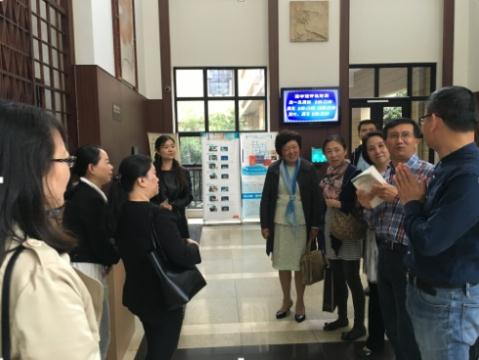 10月28日上午,在上海市教育科学研究院党委副书记、工会主席陆勤的带领下,工会副主席唐燕萍、吴雪萍,经审委主任王靖以及院部、各所(部门)工会委员代表一行13人来到上海政法学院,就院校工会工作进行了交流、学习和研讨。 首先,上海政法学院工会常务副主席周毅带领大家参观了校园一、二、三期校舍,独特大气的建筑风格、美丽整洁的校园给大家留下了难忘的印象。图书馆王伟馆长介绍了图书馆的基本情况,并与陆勤主席交流了校园文化建设的开展情况,同时王馆长向大家演示了3M自动借还书系统,便捷的操作体现了一切为学生服务的理念。在参观过程中,上下两层的图书馆课桌上陆续亮起了一盏盏灯光,大家充分感受到了浓浓的学习氛围。