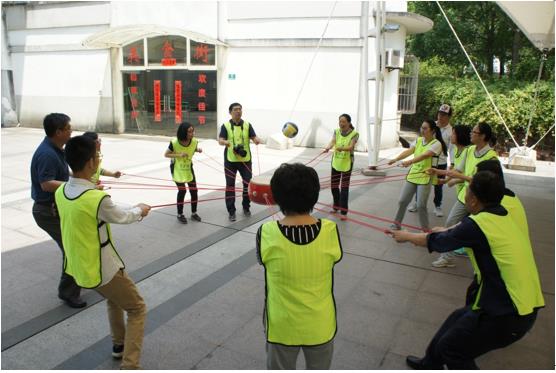 2017年5月11日,为提升新成立的院部党支部作为基层党组织的凝聚力,增强全体党员的集体意识和团队精神,支部组织全体党员和入党积极分子赴东方绿洲进行为期一天的团体拓展活动。院党委王刚书记、陆勤副书记也和大家一起积极参加支部“双激”项目之一的团队拓展训练。 在专业教练的指导下,全体人员积极投入到“大陆漂移”、“鼓动人心”、“水到渠成”三个项目竞赛中。通过“大陆漂移” 中“彩环”陆地的逐渐减少,全体人员分成“红绿”两组,每组12人,开展拓展训练的其它两个项目活动。