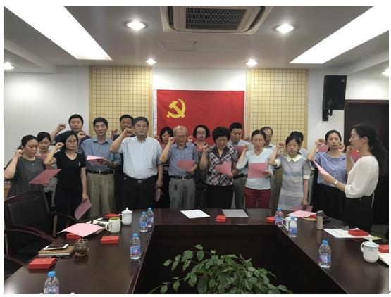 “空谈误国,实干兴邦”,顾院长指出,在工作中最重要的是要有一股“犯傻”的精神,不讲“性价比”,不计个人得失。顾院长始终对自己的工作怀有敬畏之心,他常常提及自己一生得益于三位名师:苏步青教授、刘佛年教授和吕型伟教授。这三位知名教育家对他刻骨铭心的影响,使他对教育工作常怀有敬畏之情。 报告之后顾院长为我支部每一位党员颁发了党员纪念卡。全体党员在鲜红的党旗下,庄严地举起右手并紧握拳头,重温了入党誓词,会议圆满结束。