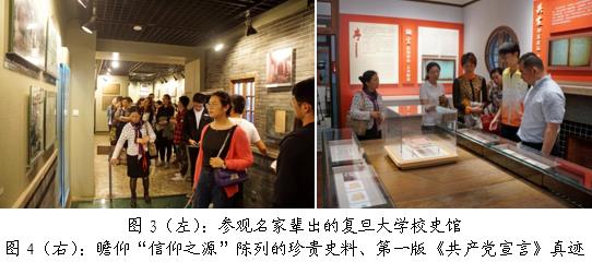 同志们认真聆听专题讲座,座位不够就挤在走道上听,边听边记笔记。大家结合学习十九大报告和平日里践行“共产党员岗”的切身体会,就“我们面临的各种挑战”、“再来看共产主义”、“中国共产党要做新贡献”等内容与时俱进地展开思考,台上台下互动频繁。通过学习,同志们更加坚定地认识到,《共产党宣言》对研究当下社会发展的现实情况和今后很长一段时期社会发展的普遍规律,仍然具有科学的理论指导价值,仍然是激励和鼓舞共产党人为实现其历史使命而不懈奋斗的精神食粮。 复旦大学校史馆记载着复旦从最初的复旦公院发展至今,从创始人马相伯先生到如今校长许宁生教授的百年历史,同志们一边认真参观、聆听讲解,一边感受着复旦浓厚的人文气息和文化底蕴。 国福路51号,曾是《共产党宣言》中文全译本首译者、复旦大学老校长陈望道的住所。如今,这里正以《共产党宣言》展示馆的新身份向公众开放。1920年春,陈望道在浙江老家柴房苦译《共产党宣言》,曾将墨水误作红糖,吃下母亲送来的粽子,“蘸着墨汁吃粽子,还说味道很甜”。党员同志们通过观看视频,真切地感受到这则被习近平总书记多次提及的故事——“真理的味道”。通过陈列一份份珍贵的史料和文物,展馆以“宣言中译•信仰之源”为主题,系统展示了《共产党宣言》的诞生、传播、翻译、版本,和对中国革命的巨大影响。瞻仰过程中,同志们近距离重温“信仰之源”,近距离感受真理的力量,纷纷表示:要更加坚定地做《共产党宣言》精神的忠实传人,紧密团结在以习近平同志为核心的党中央周围,始终不忘初心、牢记使命,始终坚持“四个自信”、“四个意识”,在伟大信仰的指引下,扎扎实实做好本职工作,为党和国家的教育科研事业添砖加瓦,为把我院早日建成一流智库而继续努力。