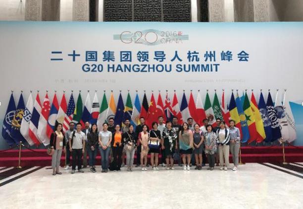 —— 大国外交,强国之梦26日下午疗养团成员参观的杭州国际博览中心是2016年20国集团(G20)峰会的举办地,团体成员在导览员的带领和介绍下,走过G20峰会的迎宾大厅、接待大厅、主会场、餐厅和休闲平台,雄伟的会场和精致的装饰设计,与前一晚大家在钱江新城“城市露台”观看的优美的G20峰会城市灯光秀一起,勾勒出中国大国外交的宏大气度与姿态,让我们感悟了我国在习近平新时代中国特色社会主义思想指引下,不断承担人类命运共同体责任的强国姿态。